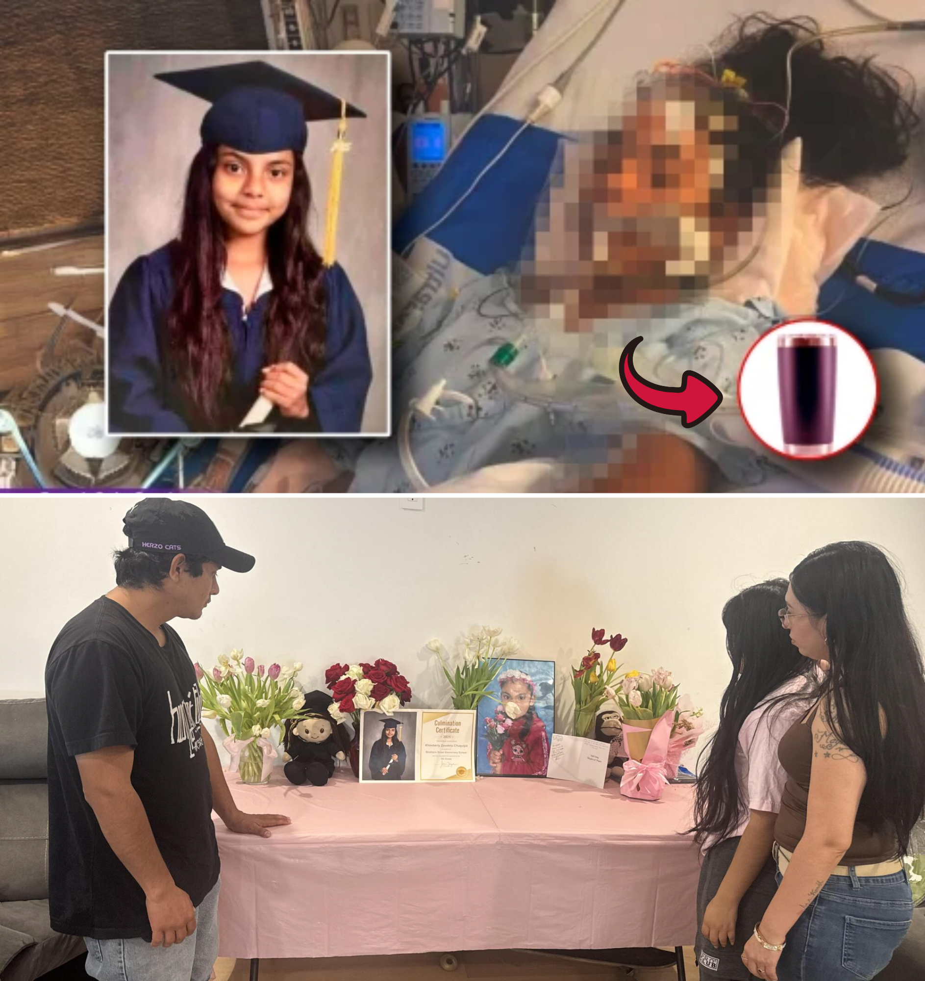 Khimberly’s mother, Elma Chuquipa, recounted the events in emotional interviews. She described her daughter stepping in to defend her older sister from a group of students who were allegedly bullying her. During the confrontation in the hallway at dismissal time, a tall boy pushed Khimberly, and when she challenged him to go to the principal’s office, the situation escalated. Chuquipa stated that someone in the group threw a metal water bottle that struck Khimberly directly in the head. The impact caused immediate trauma, though initial medical attention at the emergency room resulted in her being sent home with instructions to take Tylenol for headaches. Days later, severe symptoms emerged: intense headaches, collapse, a diagnosed brain hemorrhage from a ruptured blood vessel, and emergency brain surgery at UCLA Children’s Hospital. Despite a slim chance of survival, Khimberly was placed in a coma before her brain activity ceased.