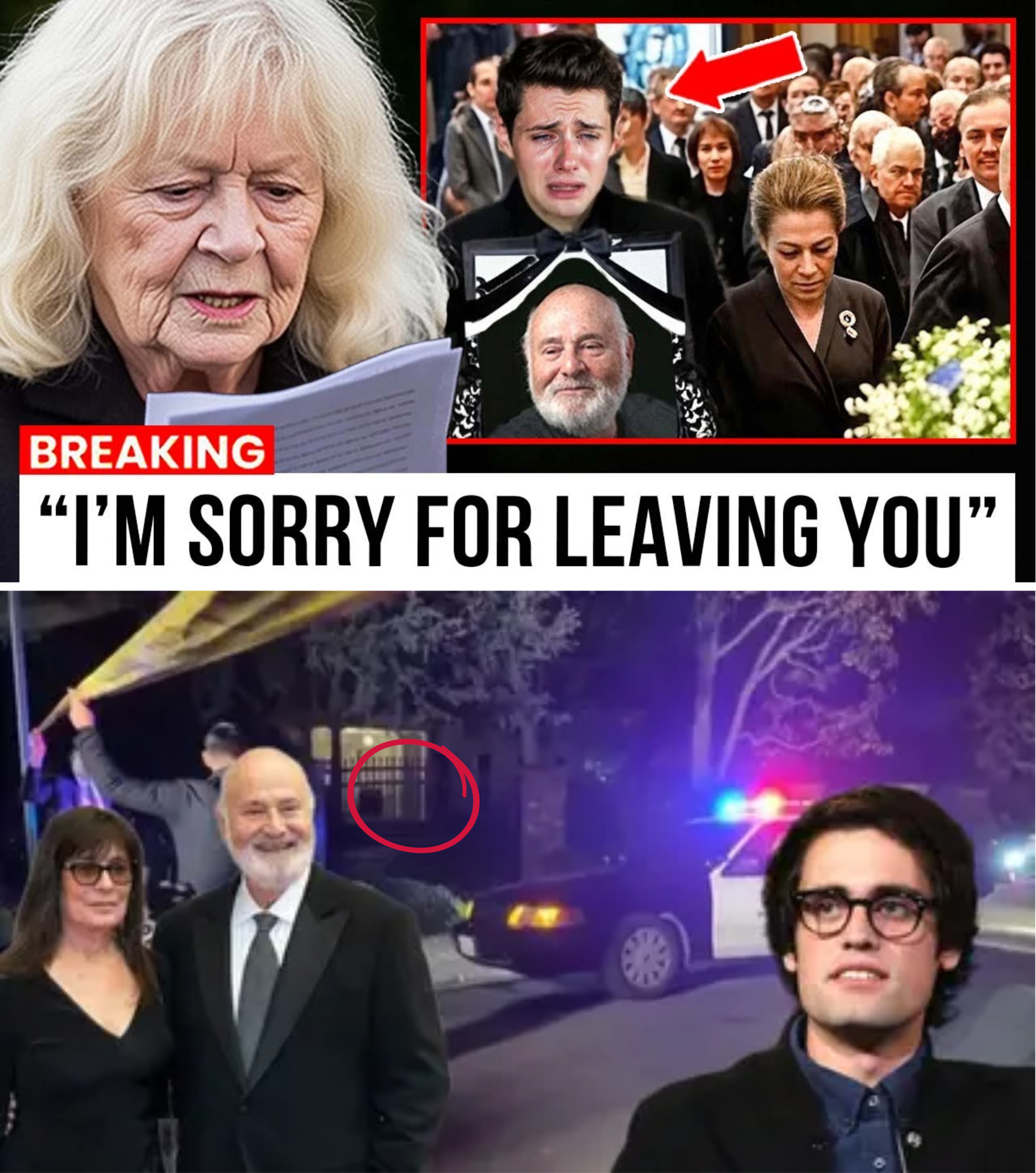 In the shadow of unimaginable tragedy, the private funeral for Hollywood legend Rob Reiner and his wife Michele Singer Reiner became the stage for an unexpected and profoundly moving moment. Held on December 22, 2025, at a secluded chapel in Los Angeles following their cremation at Mount Sinai Mortuary, the service was intended as an intimate affair for immediate family and a handful of close confidants. The couple had been fatally stabbed on December 14 in their Brentwood home, allegedly by their son Nick Reiner, with autopsies confirming multiple sharp force injuries leading to rapid death. Amidst the raw grief, Sally Struthers, Reiner’s longtime co-star from the groundbreaking sitcom “All in the Family,” made a dramatic uninvited appearance, delivering a tribute that stunned the gathering into silence.