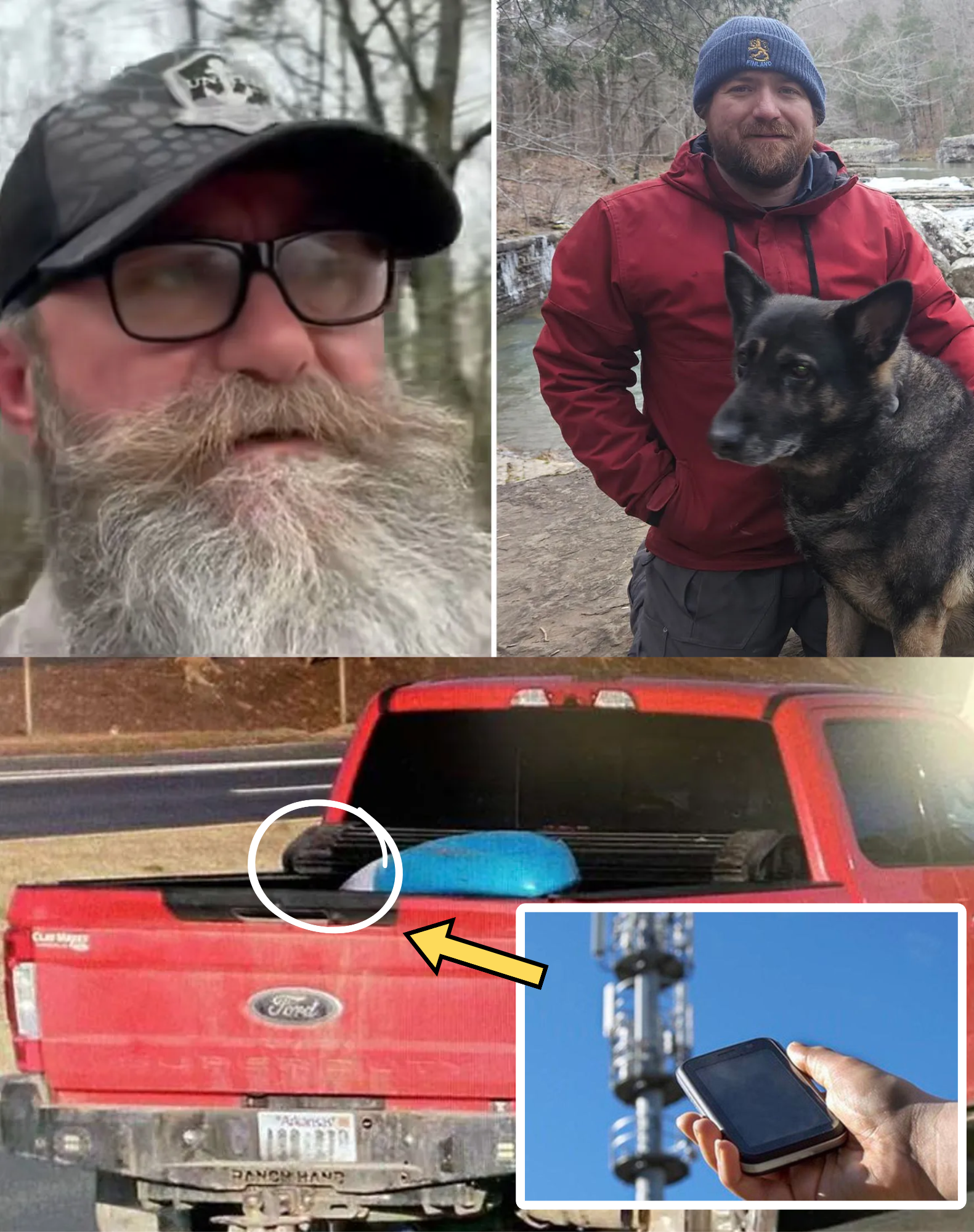 The truck itself deepens the mystery. Keys were in the ignition, shotgun and locked safe untouched, most camping gear intact. Missing were Palmer’s coat, some clothing, Zoey’s food bowls, and the blue-and-white kayak seen loaded in the truck bed on earlier traffic camera footage. Zoey was rescued dehydrated but alive from a steep bluff overlooking the Atlantic on January 22 — her position suggesting separation under duress or during flight. No signs of struggle were visible around the vehicle, but the southward phone movement, the abandoned truck, the stranded dog, the missing kayak, and now the irreconcilable cell data all point toward deliberate human intervention rather than random misfortune.
