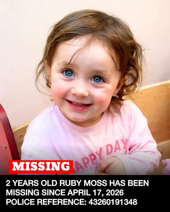 According to initial reports, Ruby Moss was last accounted for on April 17 and was expected to return home on April 20 but never arrived. Since then, both the toddler and her father have not been located, prompting authorities to launch an active search operation. Officials have not released full details about the father at this stage but confirmed that both individuals are being sought as part of the inquiry.