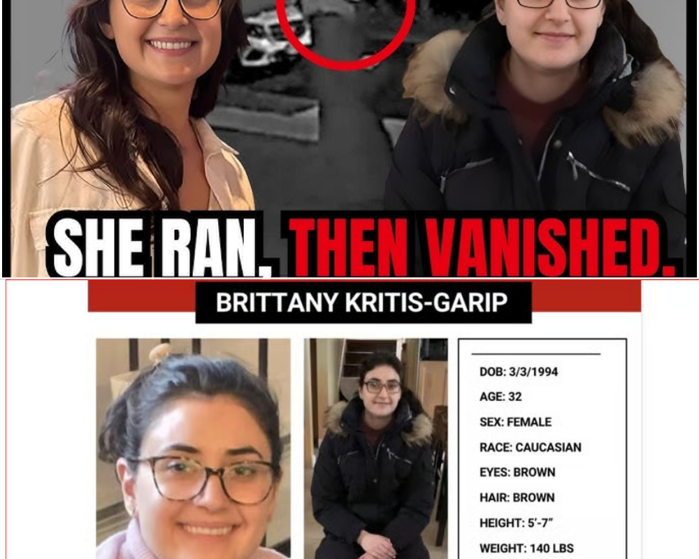 On Friday, March 20, 2026, just after 8 p.m., a grainy security camera on McCouns Lane in the affluent hamlet of Oyster Bay, Long Island, captured a haunting final image: 32-year-old Brittany Kritis-Garip walking alone down a dimly lit suburban street. Dressed in black pants and a black jacket with a fur collar, she moved with an unsteady, hurried gait under the faint glow of streetlights. Minutes earlier, according to her husband Fernando Garip, she had been riding with him when something inside her suddenly broke. In a state of pure panic, Brittany leapt from the moving car, hurled her cellphone into a thick patch of roadside bushes as if desperate to disappear from the world, and ran off into the cool spring evening. That impulsive act set in motion one of the most urgent and emotionally charged missing-person searches on Long Island in recent memory.