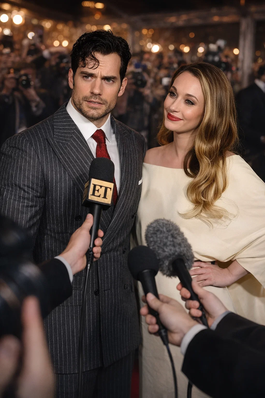 Hollywood’s leading man Henry Cavill once again proved why he’s not just Superman on screen—he’s got nerves of steel in real life. At a glamorous recent red carpet event, a bold reporter decided to probe the actor about his long-term relationship with producer girlfriend Natalie Viscuso. The question hit hard: Why hasn’t the couple tied the knot yet, and is he letting her “suffer” by delaying marriage? Cavill didn’t hesitate. With trademark calm intensity, he fired back three devastating words that reportedly left the journalist stunned, red-faced, and—according to swirling rumors—out of a job by the end of the night.