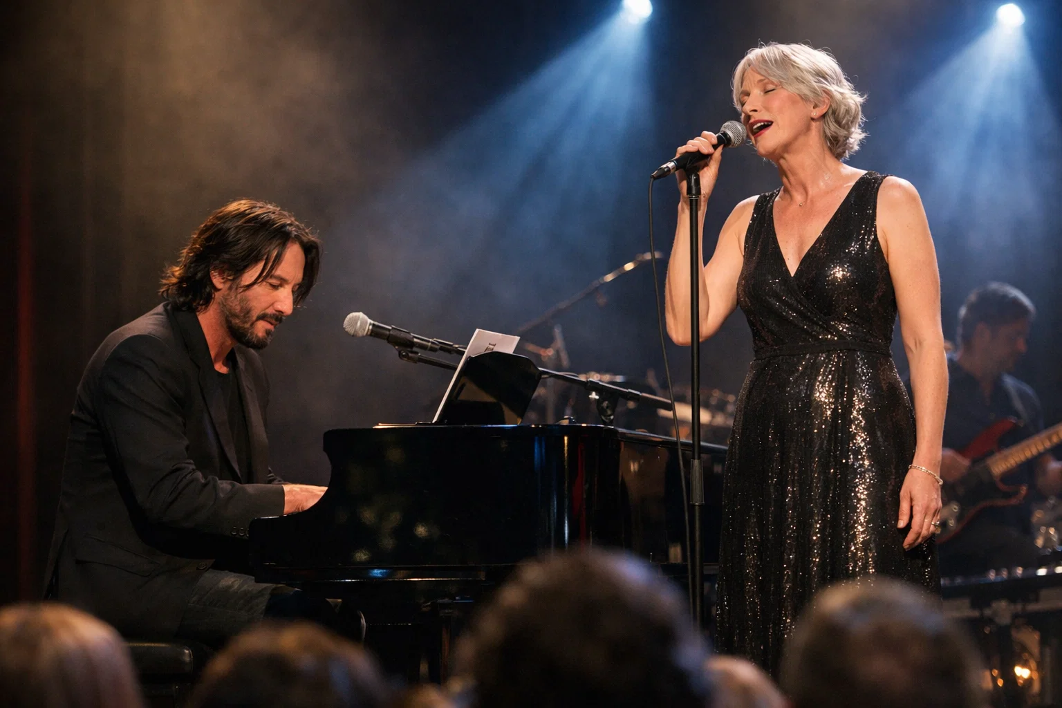 Alexandra Grant, whose creative partnership with Reeves has long extended beyond their personal relationship into collaborative art projects, took center stage with her warm, expressive vocals. She performed a song that holds special meaning for the couple — a piece they both cherish for its themes of love, resilience, and connection. Their chemistry was undeniable; every glance, every synchronized moment between piano and voice created an enchanting harmony that left the crowd smiling, swaying, and sometimes wiping away happy tears.