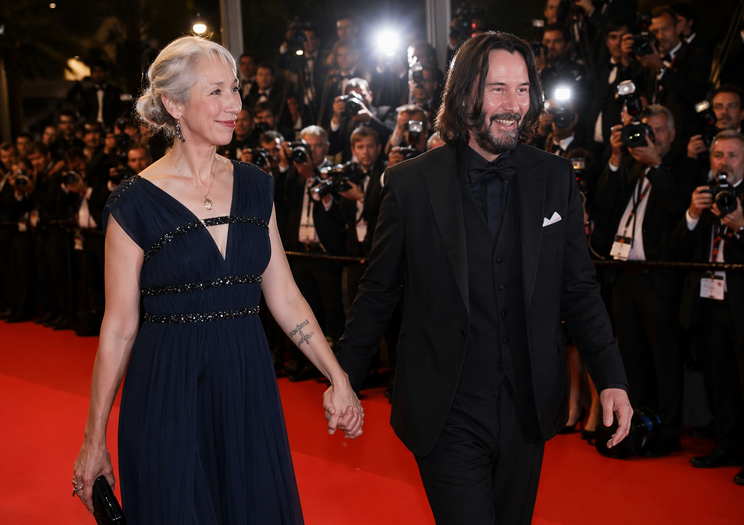 The couple, who have been together since 2019 and built their relationship on deep friendship, mutual respect, and shared creativity, arrived looking effortlessly elegant. Keanu, known for his humble and grounded personality, wore a sharp dark suit that highlighted his timeless charm. Alexandra complemented him beautifully in a sophisticated outfit that reflected her artistic soul—confident, graceful, and glowing with inner light.