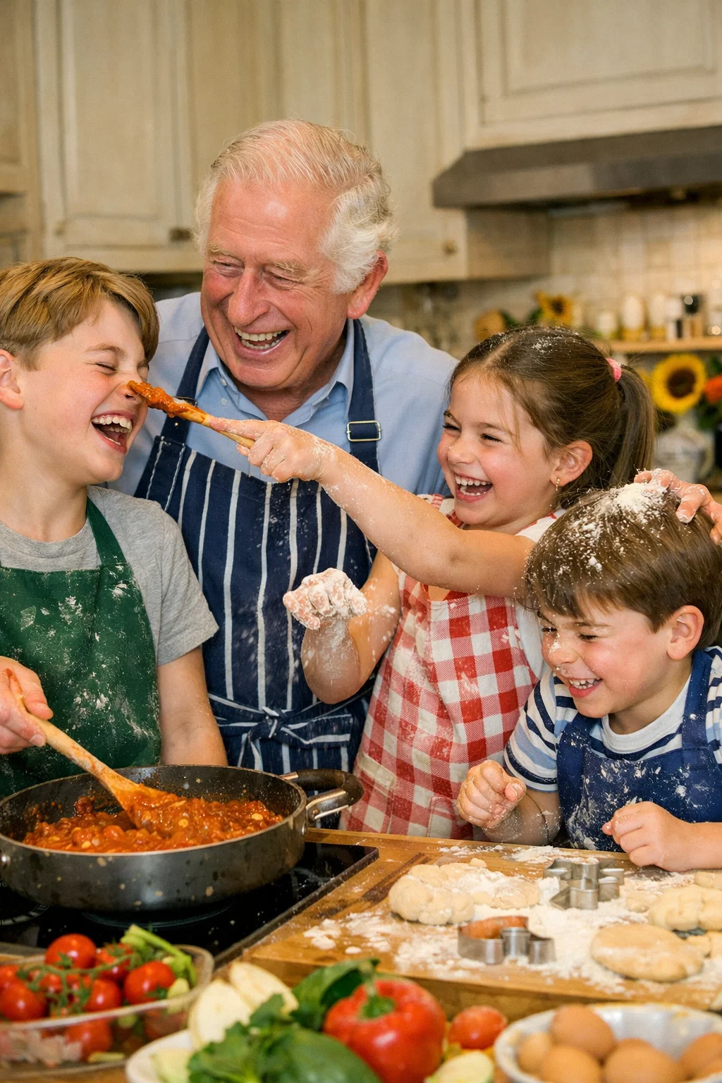 The moment underscores Charles’s hands-on approach to grandfatherhood. Queen Camilla once shared how he would crawl on the floor making funny noises for hours with the little ones, and this kitchen adventure takes that playfulness to a new level. For a man who has spent decades advocating for environmental causes and organic farming, teaching his grandchildren to cook with fresh, sustainable ingredients feels like a natural extension of his values—passing down not just recipes, but lessons in responsibility toward the planet.