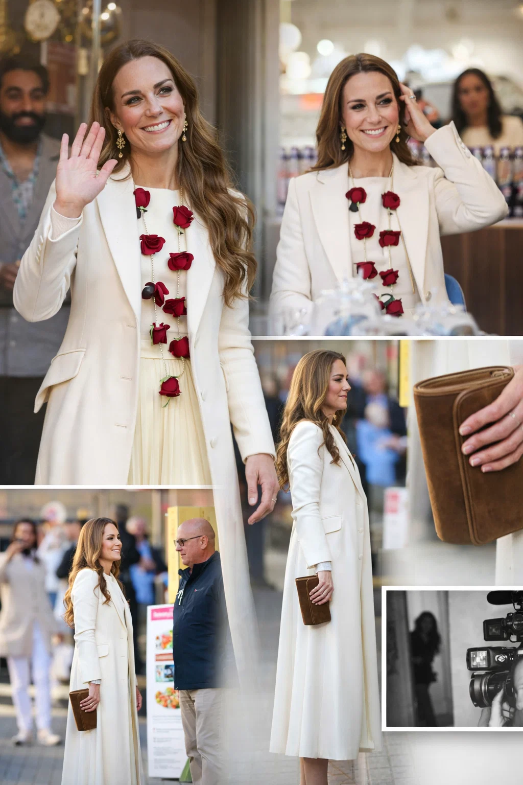 The princess was taken to a table where women were making garlands made from fresh rose petals, asking them about their technique and how long it took them to do.