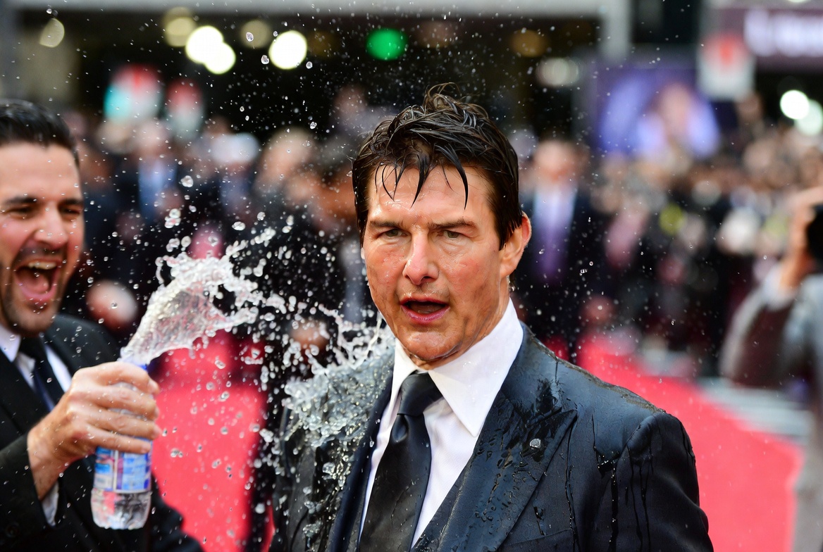 A “reporter” from a British TV prank show (Channel 4’s now-infamous Balls of Steel) shoved a microphone in Cruise’s face and suddenly four jets of water blasted directly into the actor’s eyes and mouth. The crowd gasped. Security froze. For a moment, it looked like the Mission Impossible star might explode.